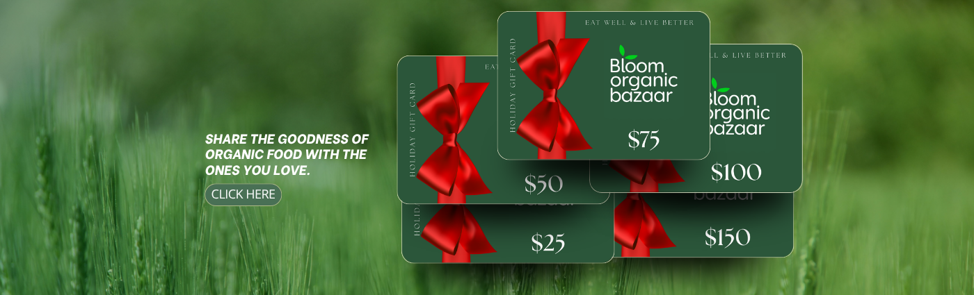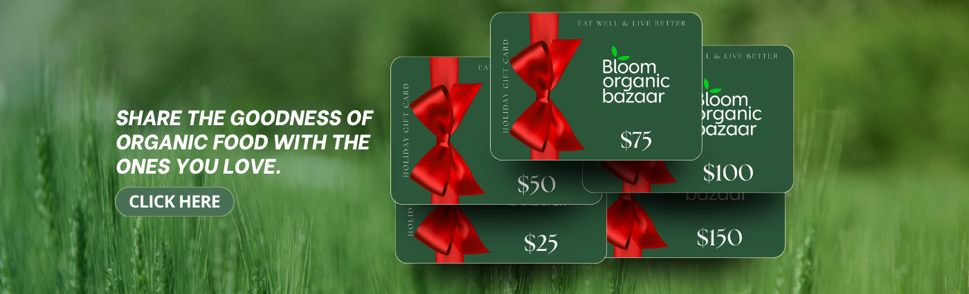 Organic products are grown without synthetic chemicals, pesticides, herbicides, fungicides, artificial colours, fillers, or genetically modified organisms (GMOs). Irradiation is also not permitted in organic farming. These products are better for your health, kinder to the environment, and often richer in flavor thanks to traditional, time-honored farming methods that prioritize soil health, biodiversity, and sustainability.