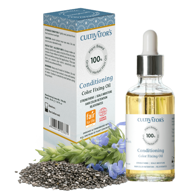 Cultivator’s Conditioning Color Fixing Oil is a one of a kind concentrated oil mix combined with the goodness of Chia and Moringa oils. This oil is greatly effective and impactful for the treatment of rough, lifeless, and damaged hair. This natural hair oil contains many phytonutrients, such as vitamin C, vitamin B, and various types of monounsaturated fats, which help to retain hair color, promotes hair strength, reduce split ends, locks moisture in the hair shaft, restores damaged hair cuticles, and helps reduce hair thinning. Finally resulting in softer, smoother, and shinier hair.